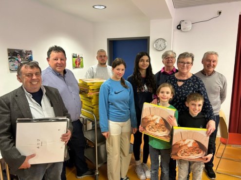 Wir vom Thomas-Wiser-Förderverein wollten den Kindern etwas Gutes tun, indem wir sie und ihre Betreuer zum Pizza-Essen eingeladen hatten.Die rasche Verteilung der nach vier Sorten vorbestellten Pizzen auf die lärmenden und hungrigen Kinder war ein logistischer Kraftakt, den Vorstandsmitglieder Franziska Kowalli und Marianne Auburger souverän meisterten. Sie hatten auch vorher schon den organisatorischen Hauptteil erledigt, von der Saalreservierung bis hin zur Bestellung. Nochmals ein dickes Dankeschön an die beiden!